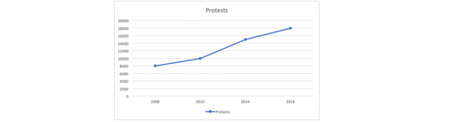 Figure 1: Evolution of the number of protests in Morocco (2008-2018)